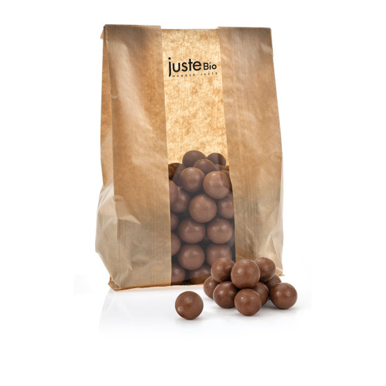 Ingrédients : Chocolat au LAIT* 66% (sucre de canne blond non raffiné*, beurre de cacao*, LAIT entier en poudre*, pâte de cacao*, vanille*), NOISETTES toastées* 33%, mélange de gomme d'acacia* (eau, sucre de canne roux*, agent d'enrobage : gomme d'acacia*, huile de tournesol*, jus de citron concentré*). Traces eventuelles d'autres fruits à coque, d'arachides, de graines de sésame, de céréales contenant du gluten, de soja, d'oeuf, de lupin et de moutarde.