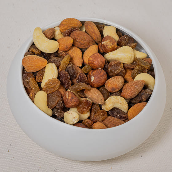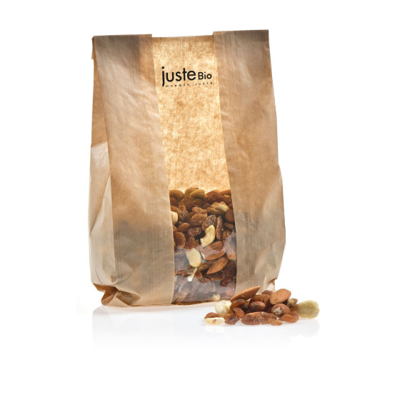 Ingrédients : Raisins secs* (raisins secs* 99,5 %, huile de tournesol* 0,5%), AMANDES*, NOIX DE CAJOU*, NOISETTES*. * produit issu de l'agriculture biologique - Certifie par FR-BIO-01 Traces éventuelles d'autres fruits à coque, d'arachides, de graines de sésame, de céréales contenant du gluten, de soja.