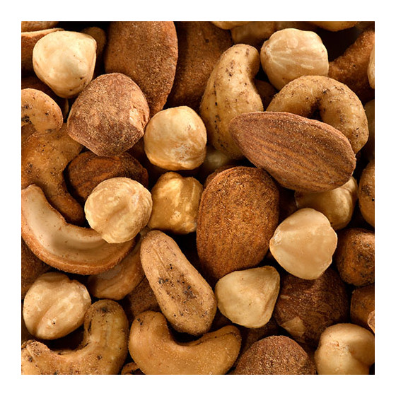 Ingrédients : NOIX DE CAJOU et AMANDES grillées salées poivrées* (NOIX DE CAJOU*, AMANDES*, sel 2%, poivre noir moulu* 1,4%, poivre blanc moulu* 1,2%), NOISETTES émondées grillées* * produit issu de l'agriculture biologique - Certifie par FR-BIO-01 Traces éventuelles d'autres fruits à coque, d'arachides, de graines de sésame, de céréales contenant du gluten, de soja, de céleri et de moutarde.